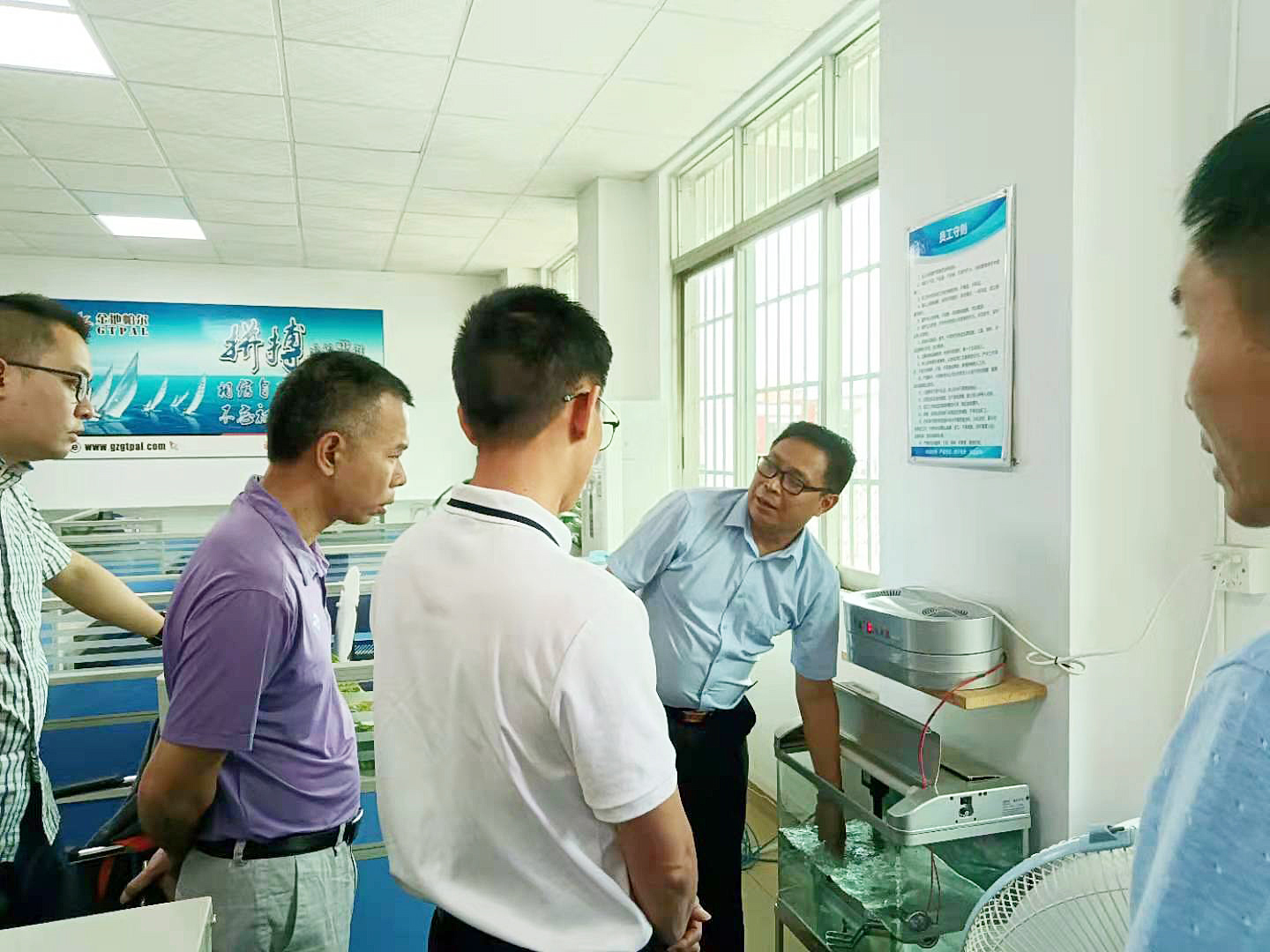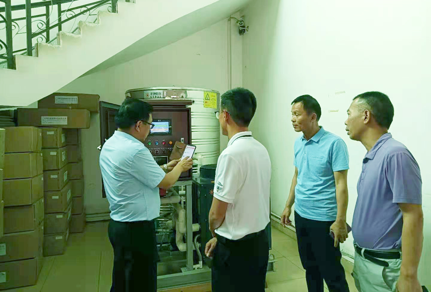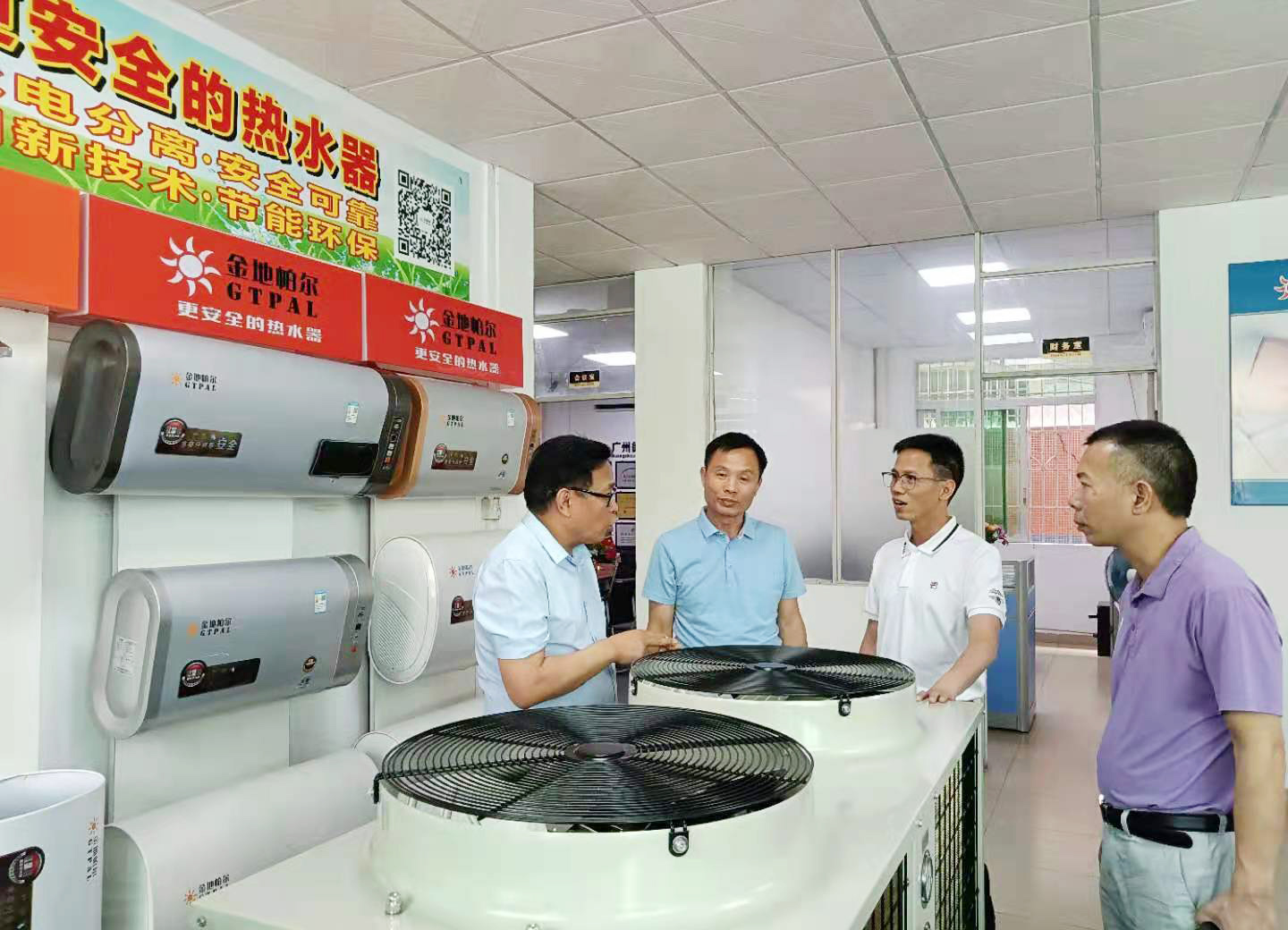司董事會(huì)主席黃建安先生以及胡遠(yuǎn)賀先生一行陪同。胡遠(yuǎn)賀先生詳細(xì)介紹了公司熱水器產(chǎn)品性能、公司辦公