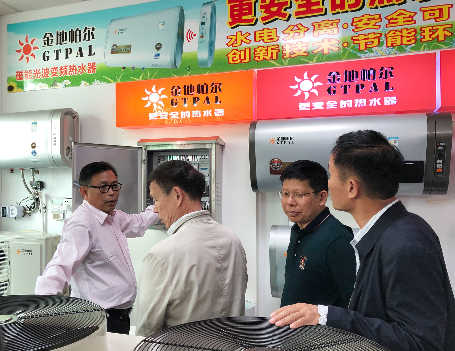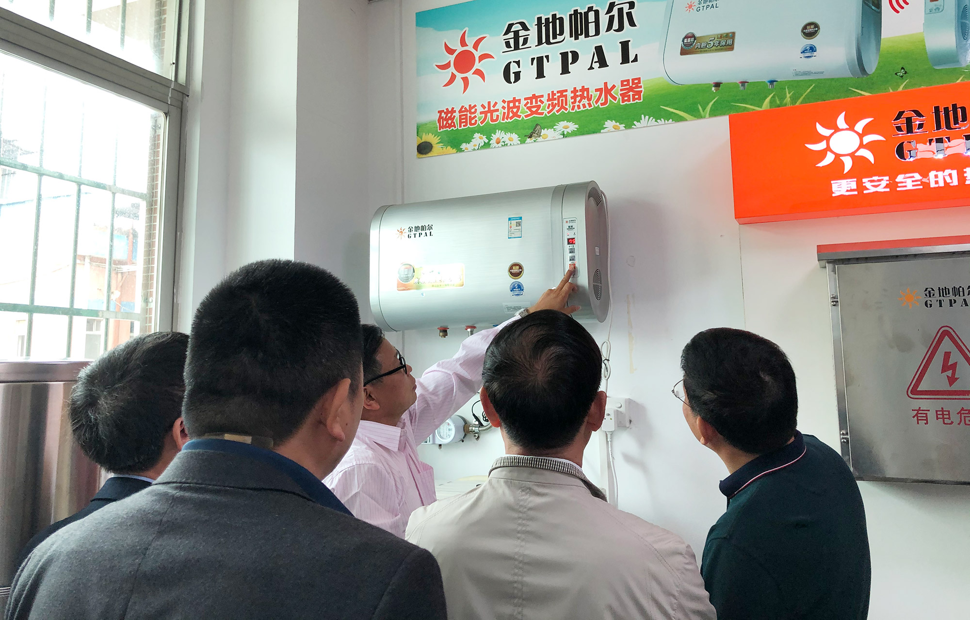 首先參觀了公司研發、生產、銷售的磁能、空氣能熱水器、遠程控制智慧云中央熱水系統及三聯供中央系統,詳細了解金地帕爾品牌熱水器產品的多樣性、安全性、節能性。胡遠賀先生向學校領導介紹了關于公司發展現狀與發展前景,對公司各型號熱水器產品做了詳細演示說明。